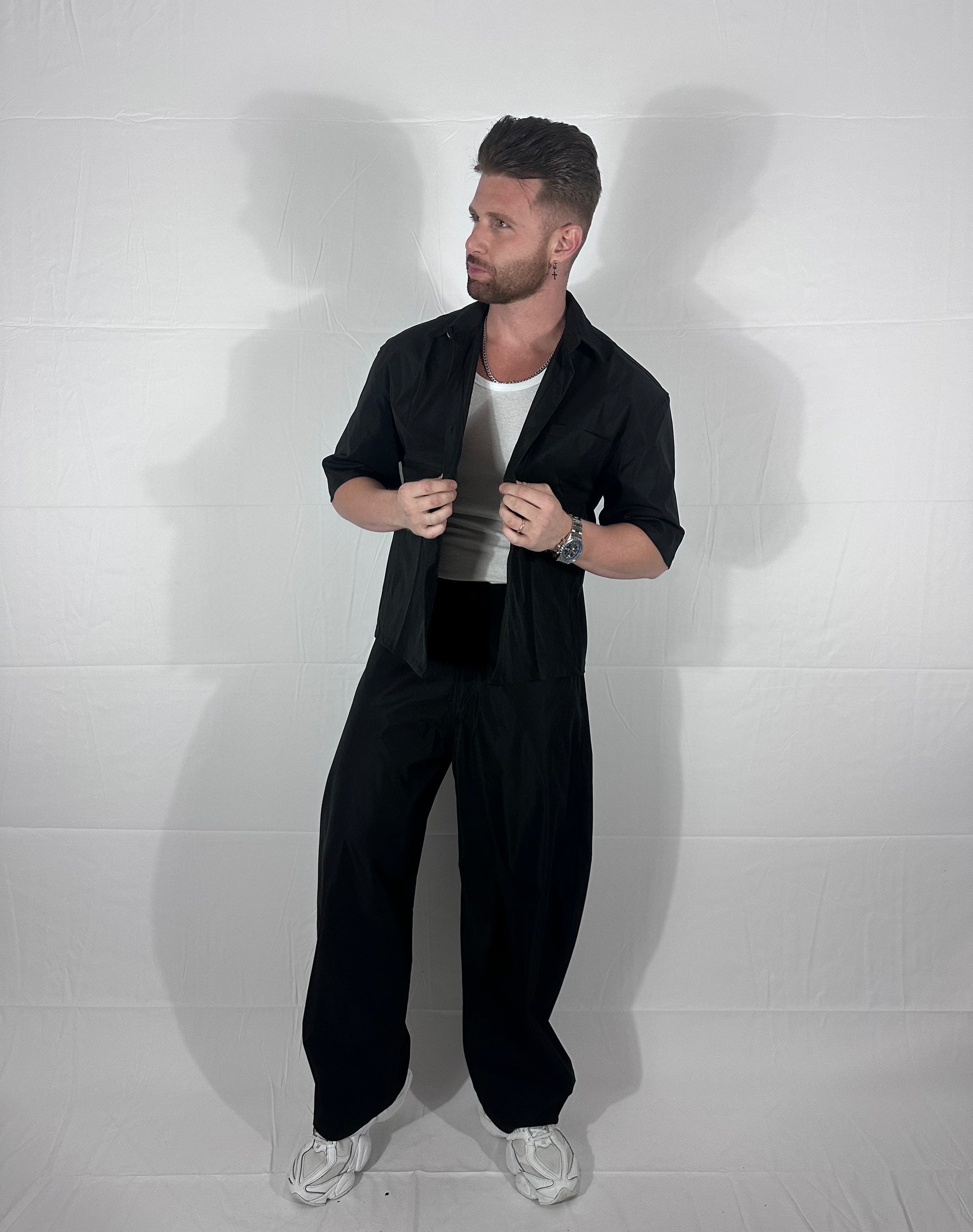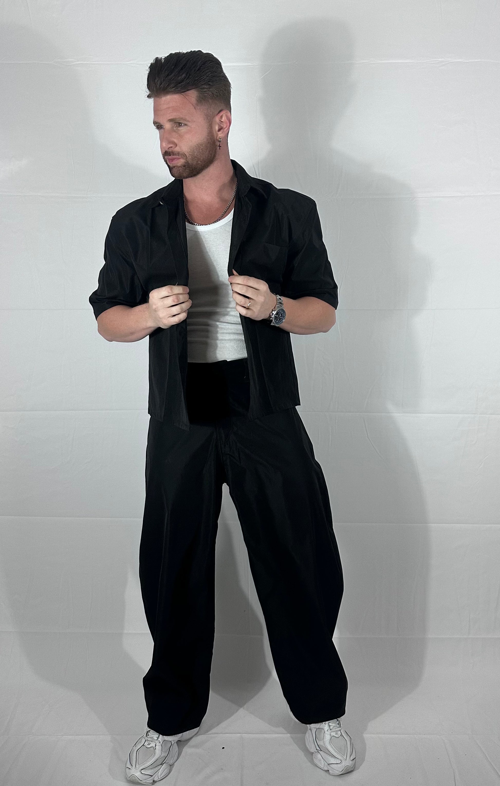IL COORDINATO CHE RIDEFINISCE L'IMPATTO Il set SINTESI รจ molto piรน di un semplice abbinamento: รจ una dichiarazione di stile assoluta. Abbiamo selezionato un coordinato camicia e pantalone pensato per chi vuole un look d'impatto senza alcuno sforzo. Uno stile pazzesco, studiato per cadere perfettamente e offrire una silhouette coordinata, moderna e aggressiva. Che tu scelga la profonditร del Nero o la variante colore, avrai addosso un pezzo di design pronto per ogni situazione, dalla strada all'evento piรน esclusivo del Capitolo 01.