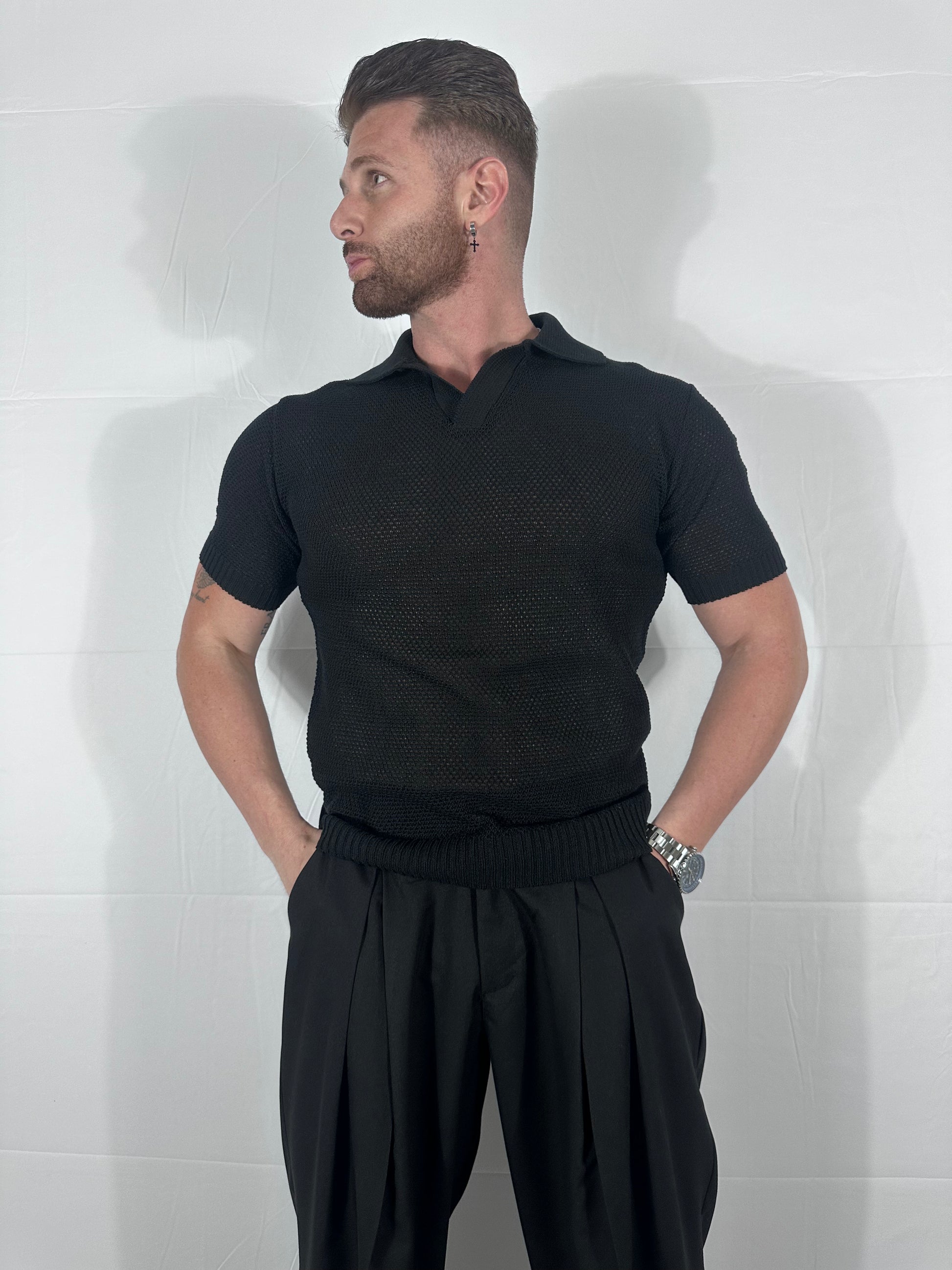 L’EQUILIBRIO DELLA FORMA E IL MINIMALISMO MODERNO La ESSENZA V-POLO rappresenta l'evoluzione del concetto classico di polo all'interno del nostro primo capitolo. Abbiamo eliminato i bottoni per lasciare spazio a un’apertura a V pulita e profonda che dona al capo un'aria rilassata ma estremamente sofisticata. È la maglia ideale per chi vuole unire la morbidezza del knitwear a un design moderno e minimale, perfetto per ogni occasione che richiede una presenza scenica solida e una distinzione sottile.